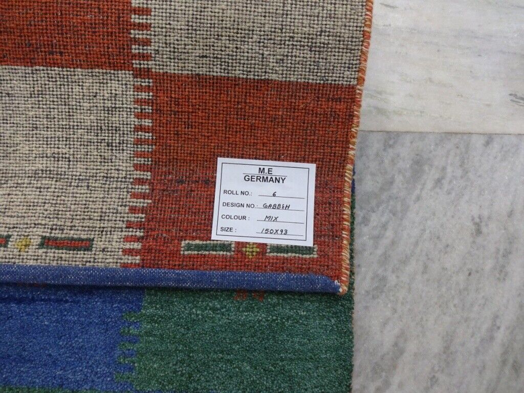 Gabbeh Teppich 93x150 cm Handgeknüpft ~ 100% Wolle ~ Blau Beige Grau Orange M6