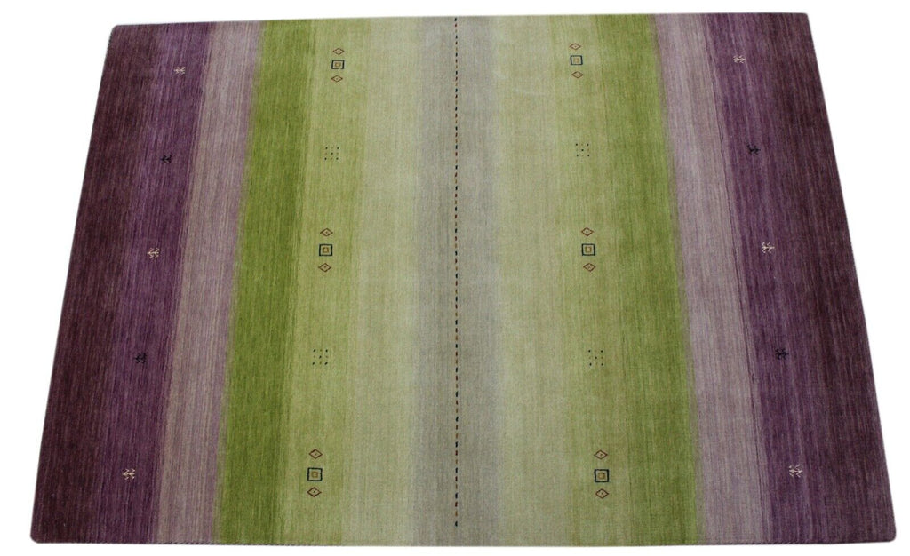 Gabbeh Teppich Violett Grün 100% Wolle 170x240 cm Handgewebt Orientteppich Lr649