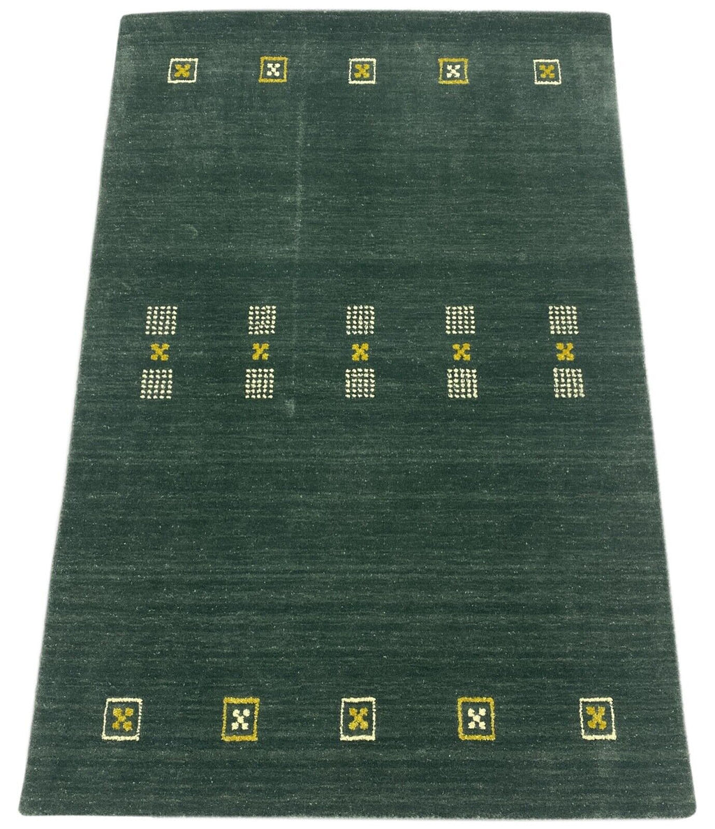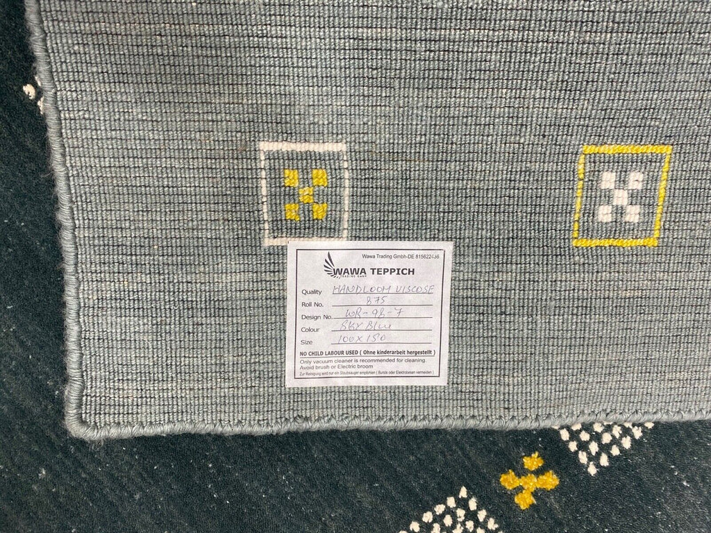 Gabbeh Teppich Wolle Viskose 100x150 cm Hell Blau Grau Grün Handgewebt WR98