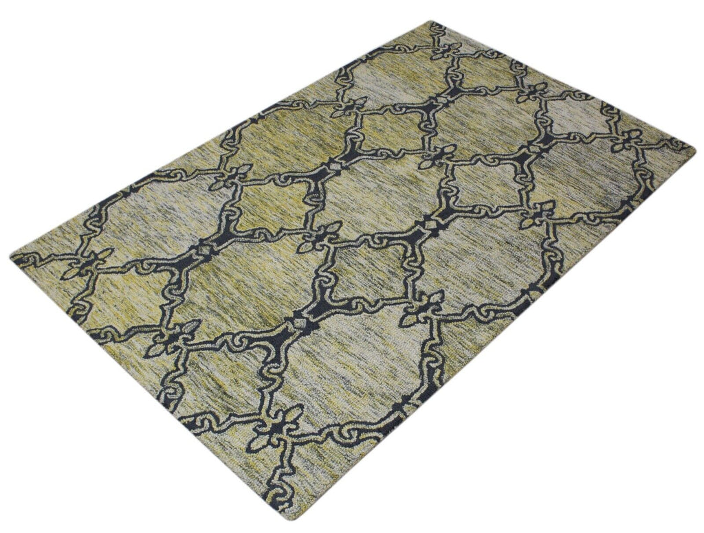 Gelb Grün Beige Teppich 100% Wolle Orientteppich 150X240 cm Handgetuftet MH921