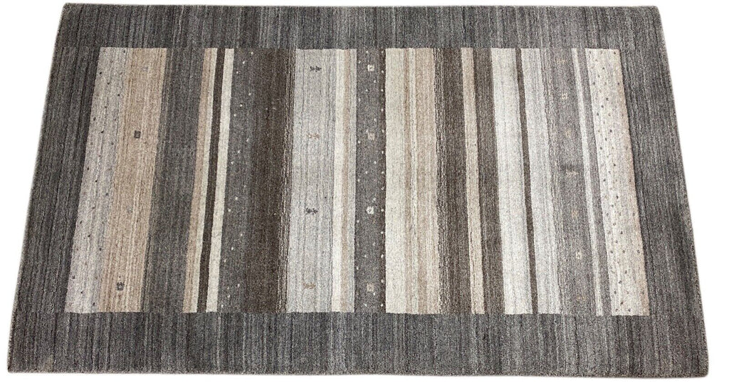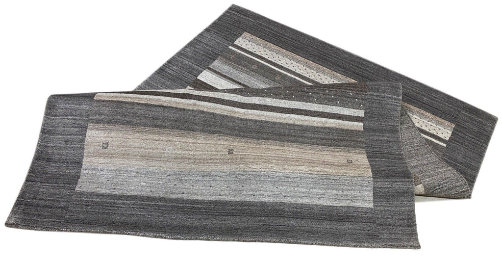 Grau Gabbeh Teppich Wolle Viskose Fine Orientteppich Handgewebt Ca. 95x160 CM
