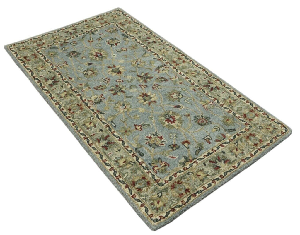 Grau Hell Blau Orient Teppich 100% Wolle 90X160 cm Handarbeit Handgetuftet T981