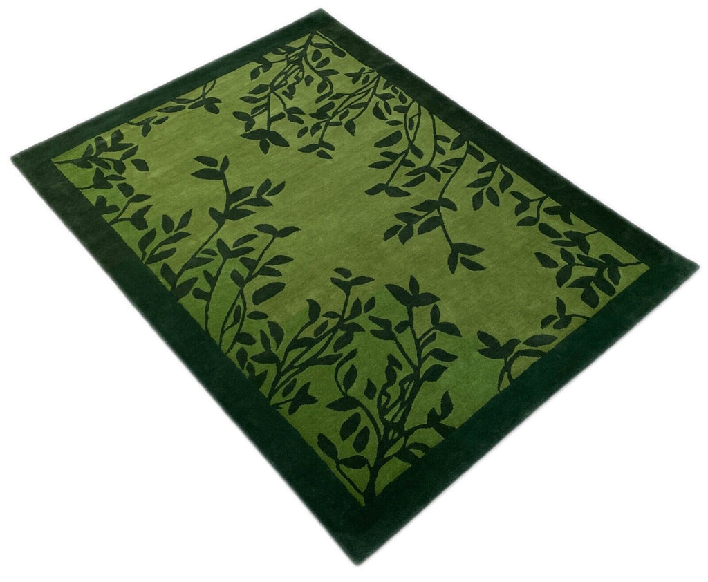 Grün Teppich 100% Wolle 170X240 CM Handarbeit Blatt Designer Orientteppich WT4