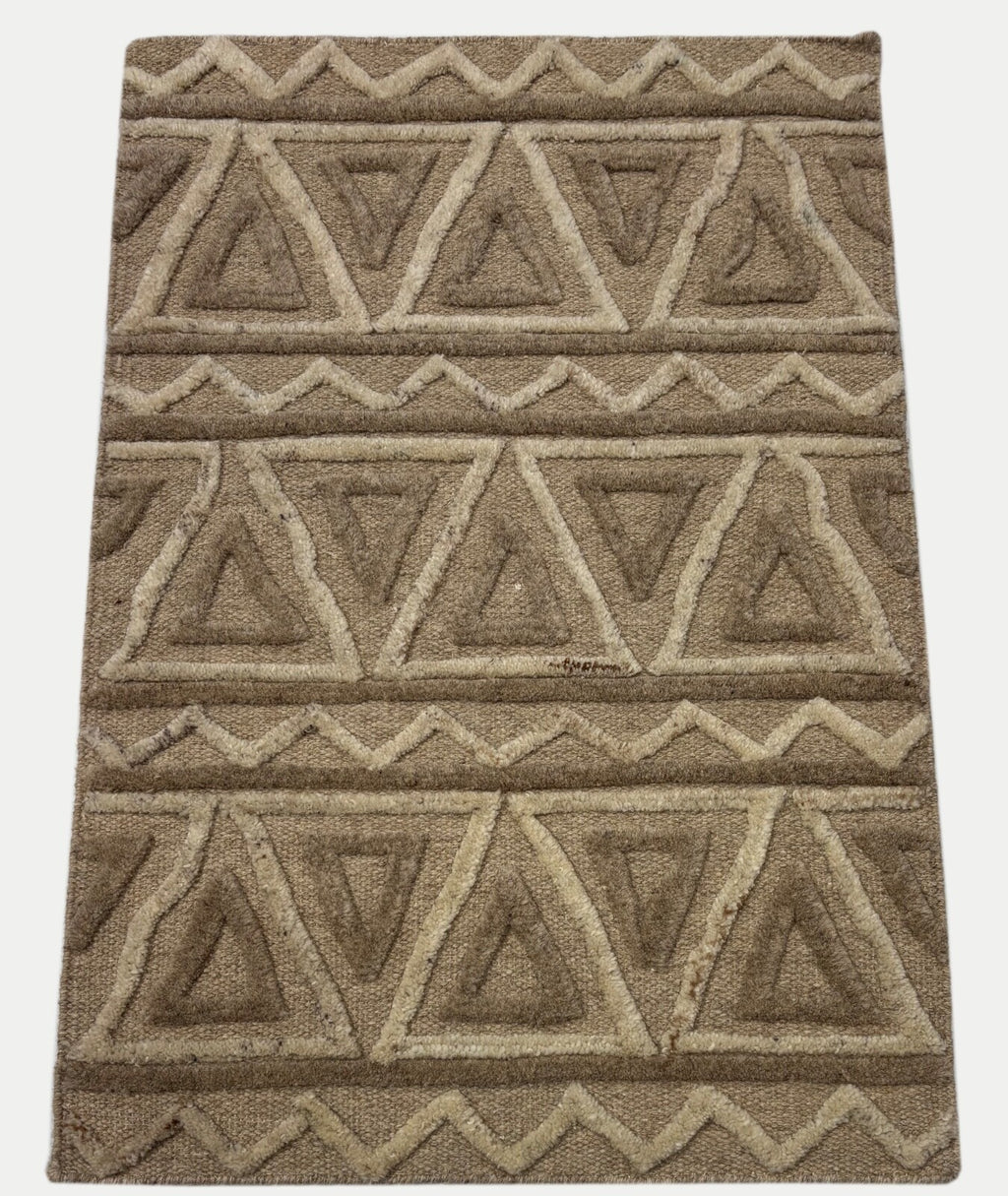 Handgefertigter Kilim Dhurry Teppich 60x90 cm – Beige und Braun, 100% Wolle, Made in India