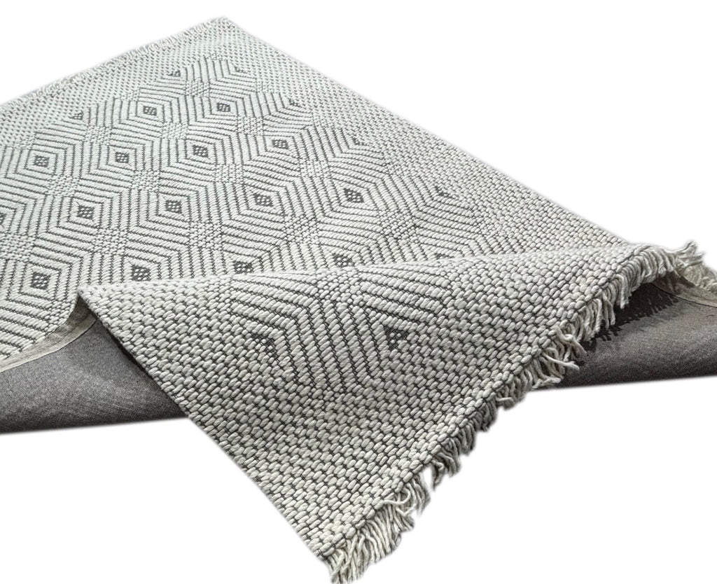 Handgefertigter Kilim Dhurry Teppich 160x240 cm – Beige Creme und Grau, 100% Wolle, Made in India