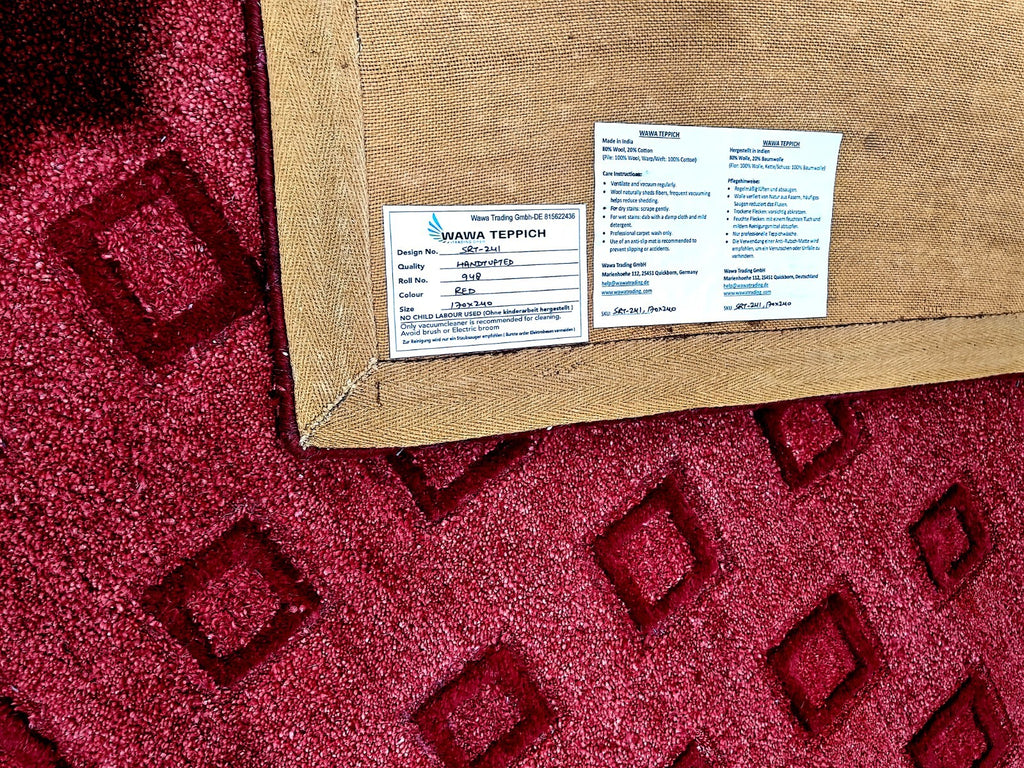 - Herstellung: Handgetuftet – von Hand gefertigt