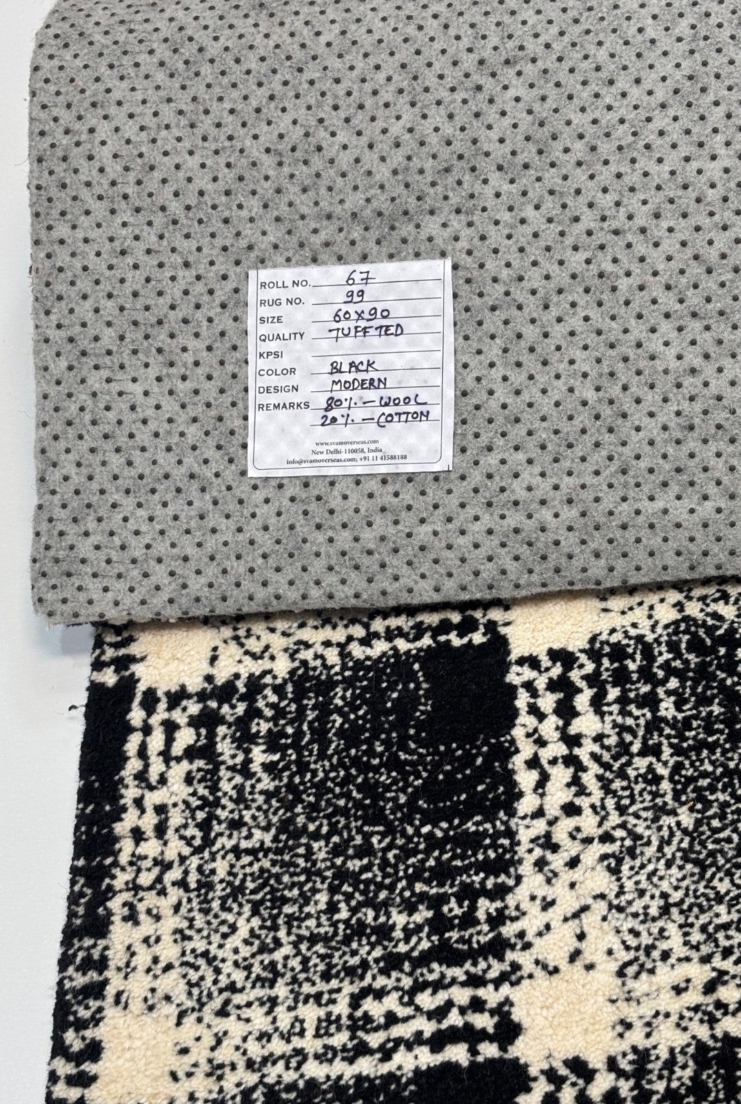 Handgetufteter Wollteppich 60x90cm Schwarz Weiß Modern Geometrisches Muster R99