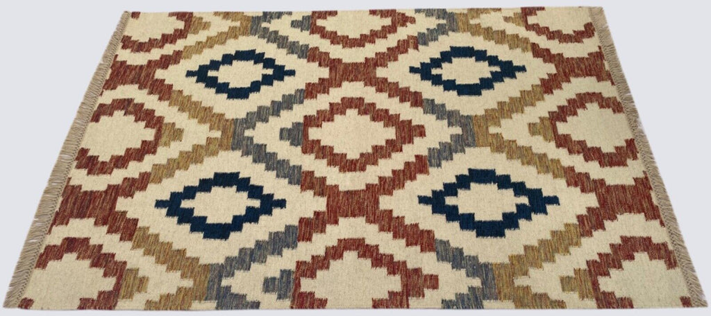 Kilim Dhurry Teppich 120x170 cm – 100% Wolle, Handgefertigt, Bunte Farben, Einzigartiges Design