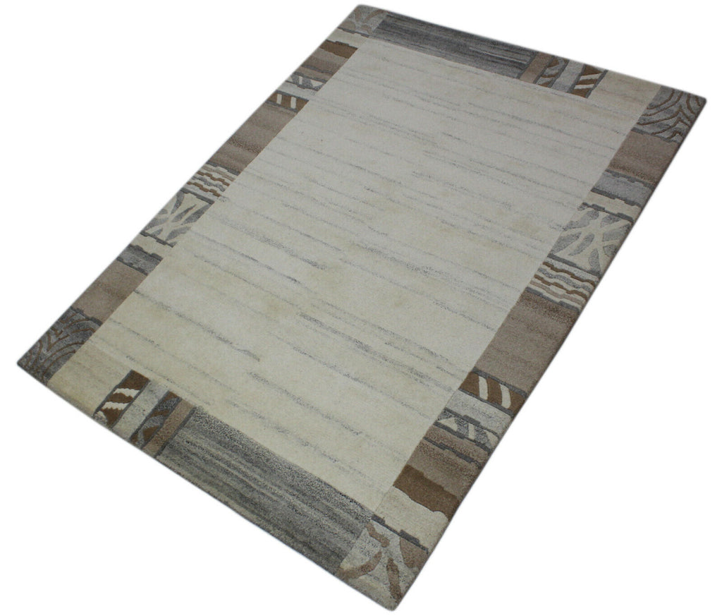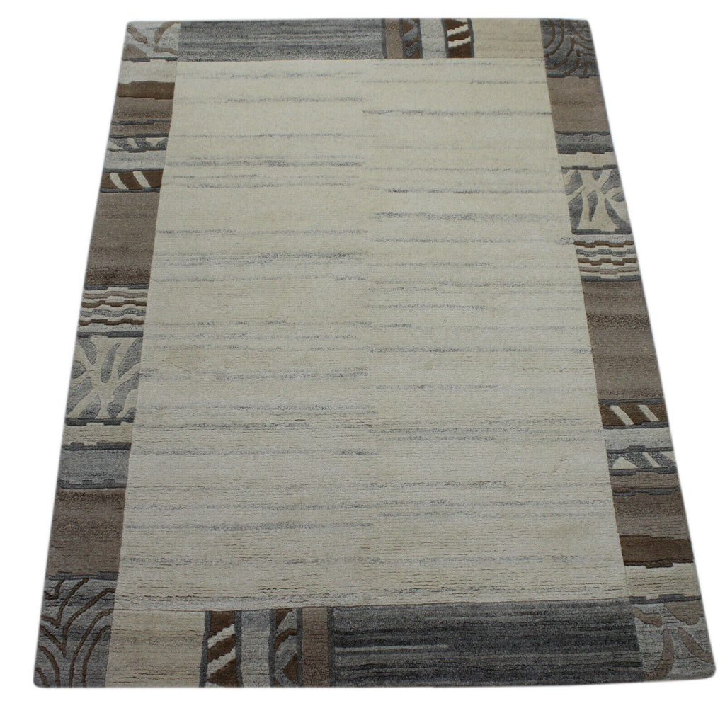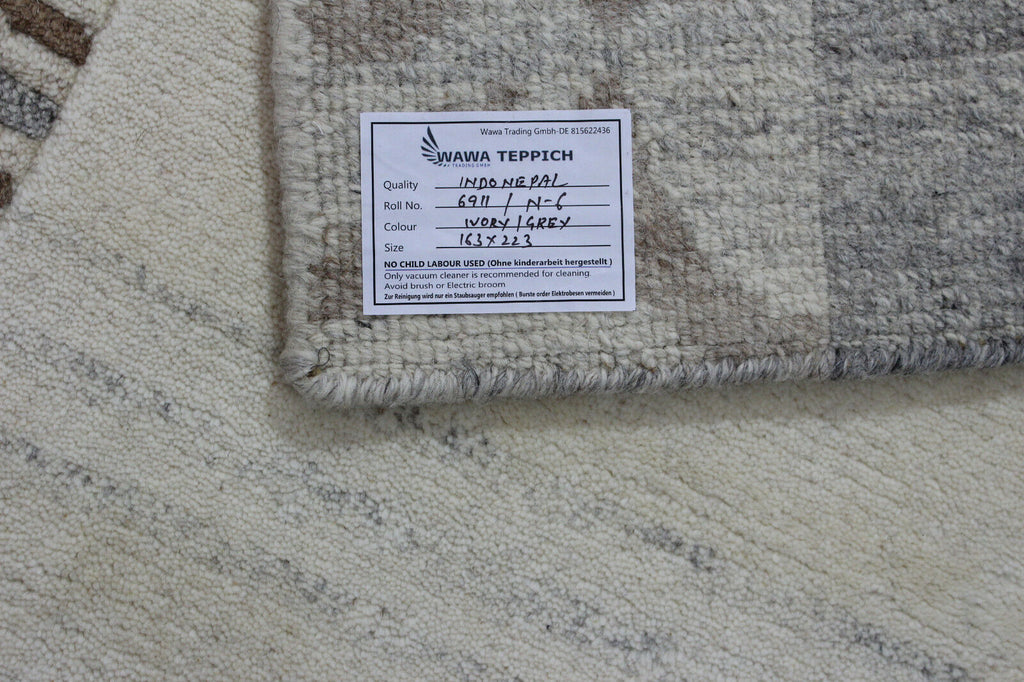 Nepal Teppich Handgeknüpft Braun Grau 100% Wolle Orientteppich 163x223 cm N6