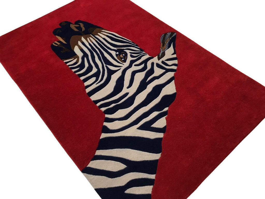 Rot Teppich 120X180 CM Handarbeit 100% Wolle Designer Handgetuftet Zebra Hand