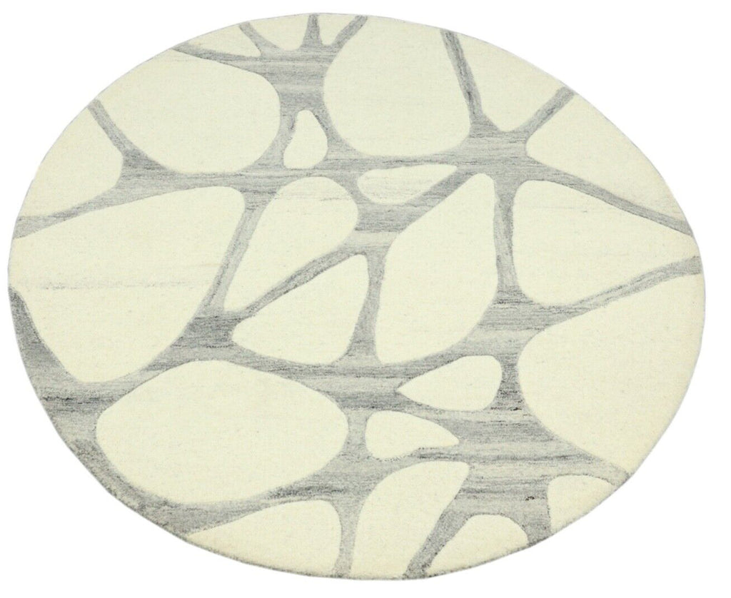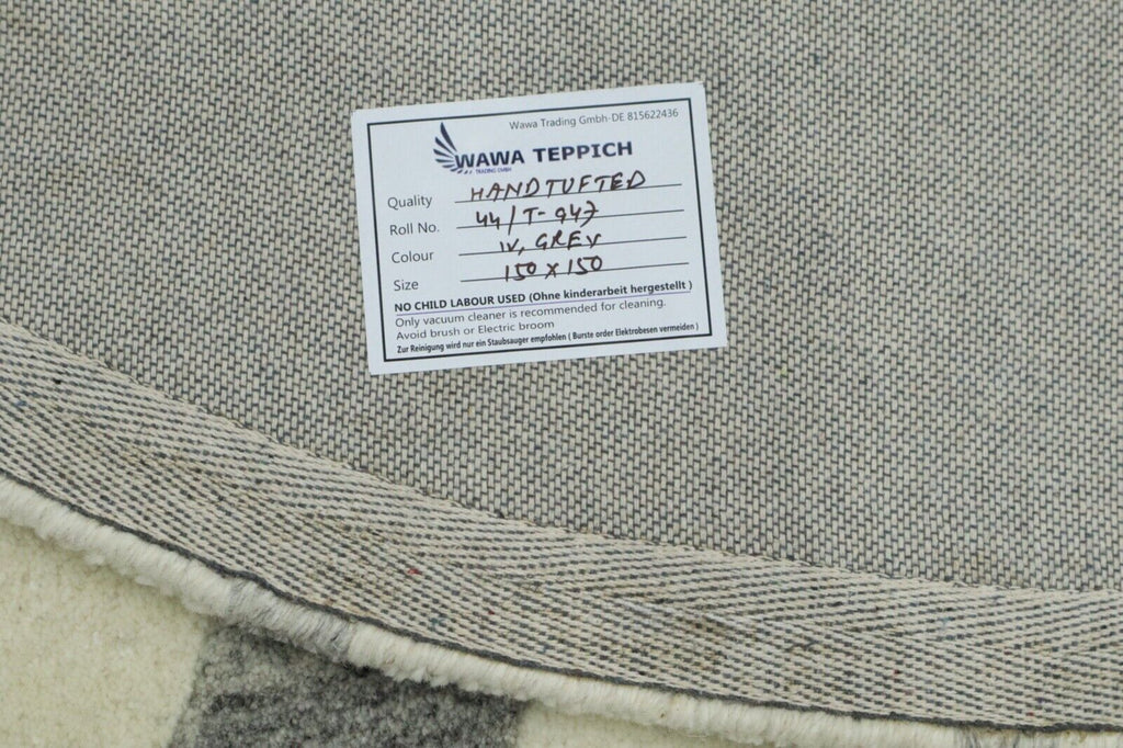 Rund Beige Grau Teppich 100% Wolle 150X150 cm Handarbeit Handgetuftet T947