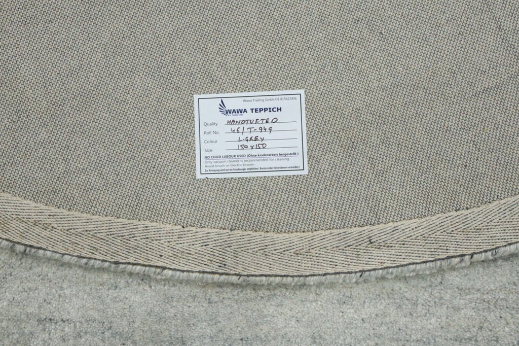 Rund Beige Grau Teppich 100% Wolle 150X150 cm Handarbeit Handgetuftet T949
