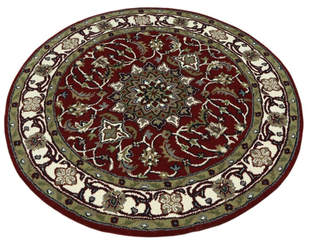Rund Orient Rot Teppich 100% Wolle 150X150 cm Handarbeit Handgetuftet T950