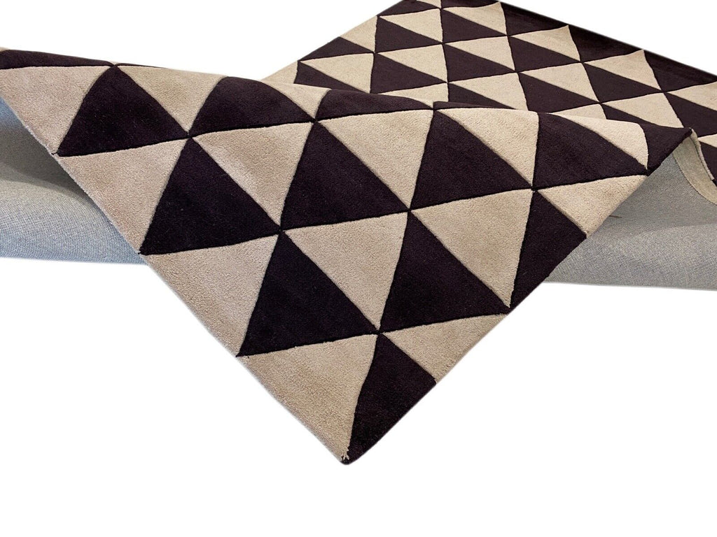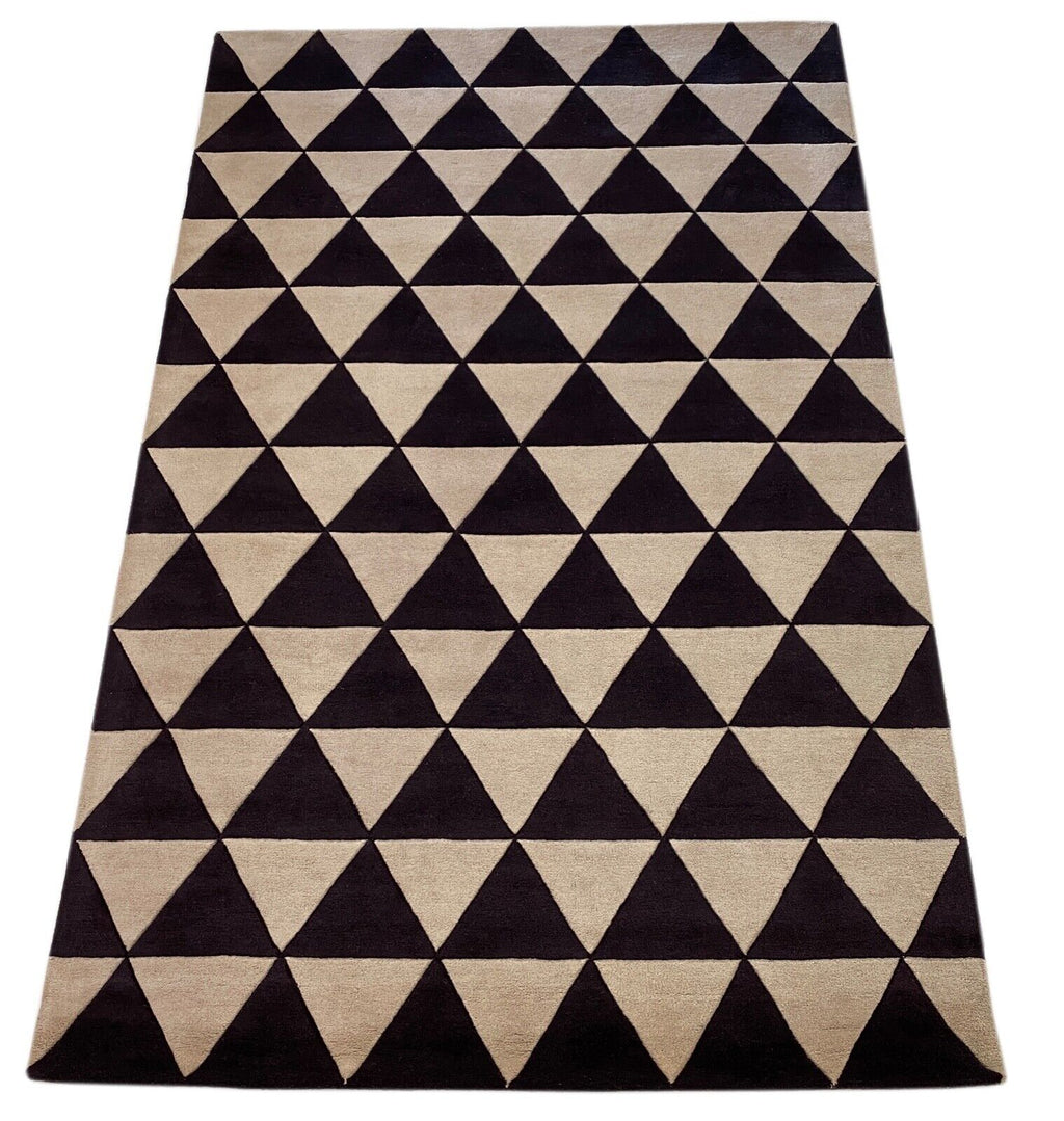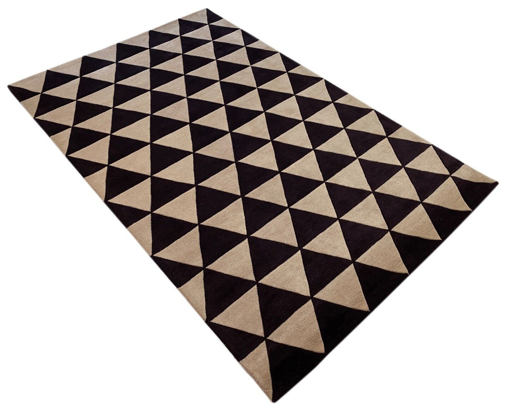 Schwarz Beige Teppich 100% Wolle Orientteppich Handgetuftet 155X245 CM D-123