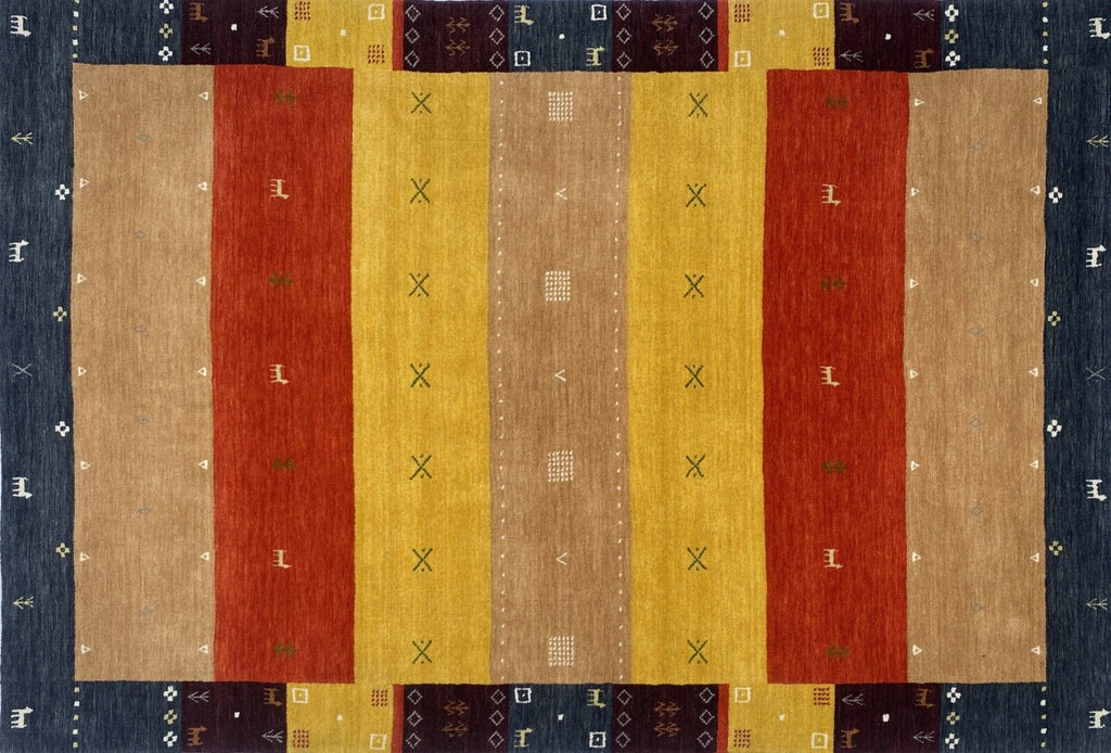 Teppich 100% Wolle 200x300 cm rot Gold Terrakott Handgewebt Gabbeh Orientteppich