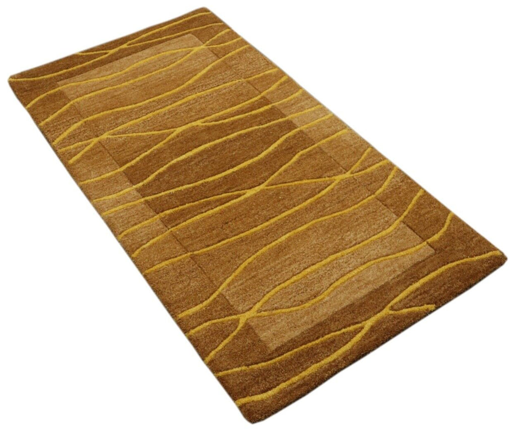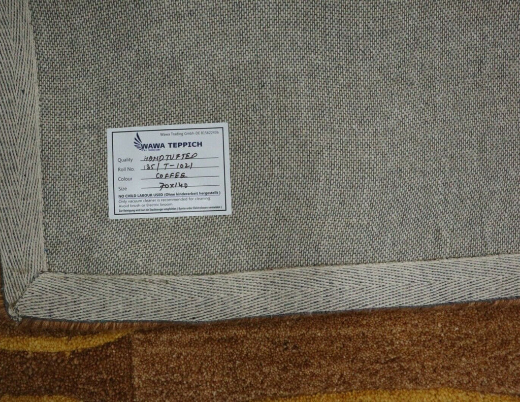 Teppich 100% Wolle 70X140 cm Handarbeit Kaffeefarbe Gold Handgetuftet T1021