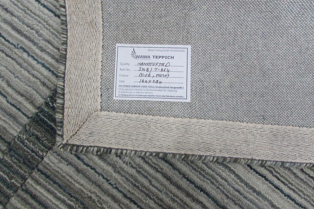 Teppich 100% Wolle Blau Grau 160X230 cm Handarbeit Loom T864