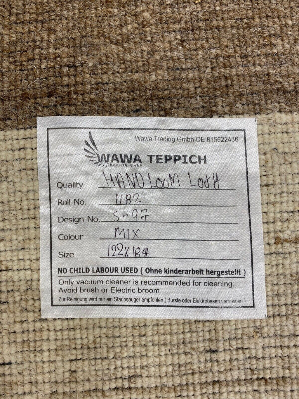 Teppich 100% Wolle Grau Beige Gabbeh lori Handgewebt 122x184 cm Naturwolle S97