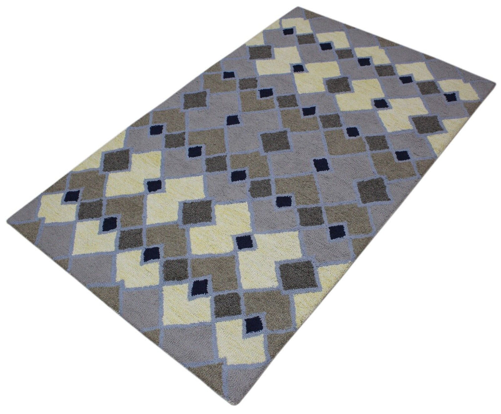 Teppich 100% Wolle Grau Beige Gelb Orientteppich 150X240 cm Handgetuftet MH938