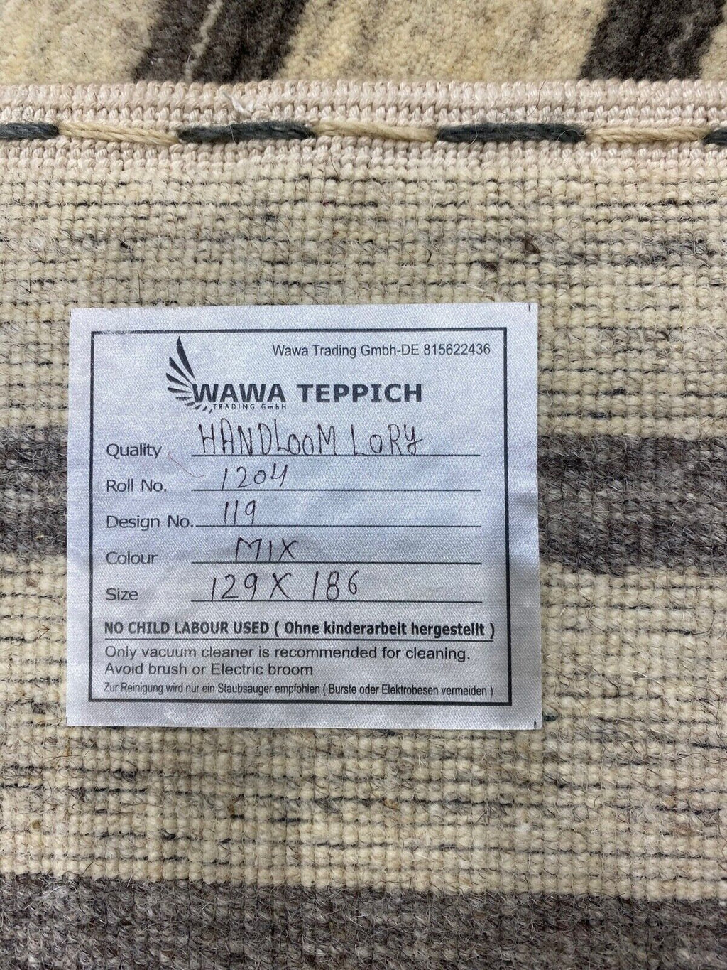 Teppich 100% Wolle Grau Beige lori Handgewebt 130x185 cm Naturwolle S119