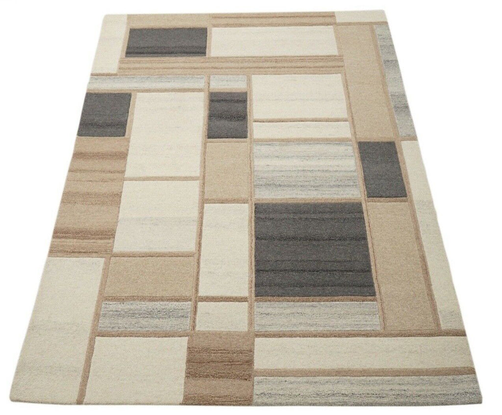 Teppich 100% Wolle Grau Braun 160X230 cm Natürliche Wolle Handgetuftet HT196