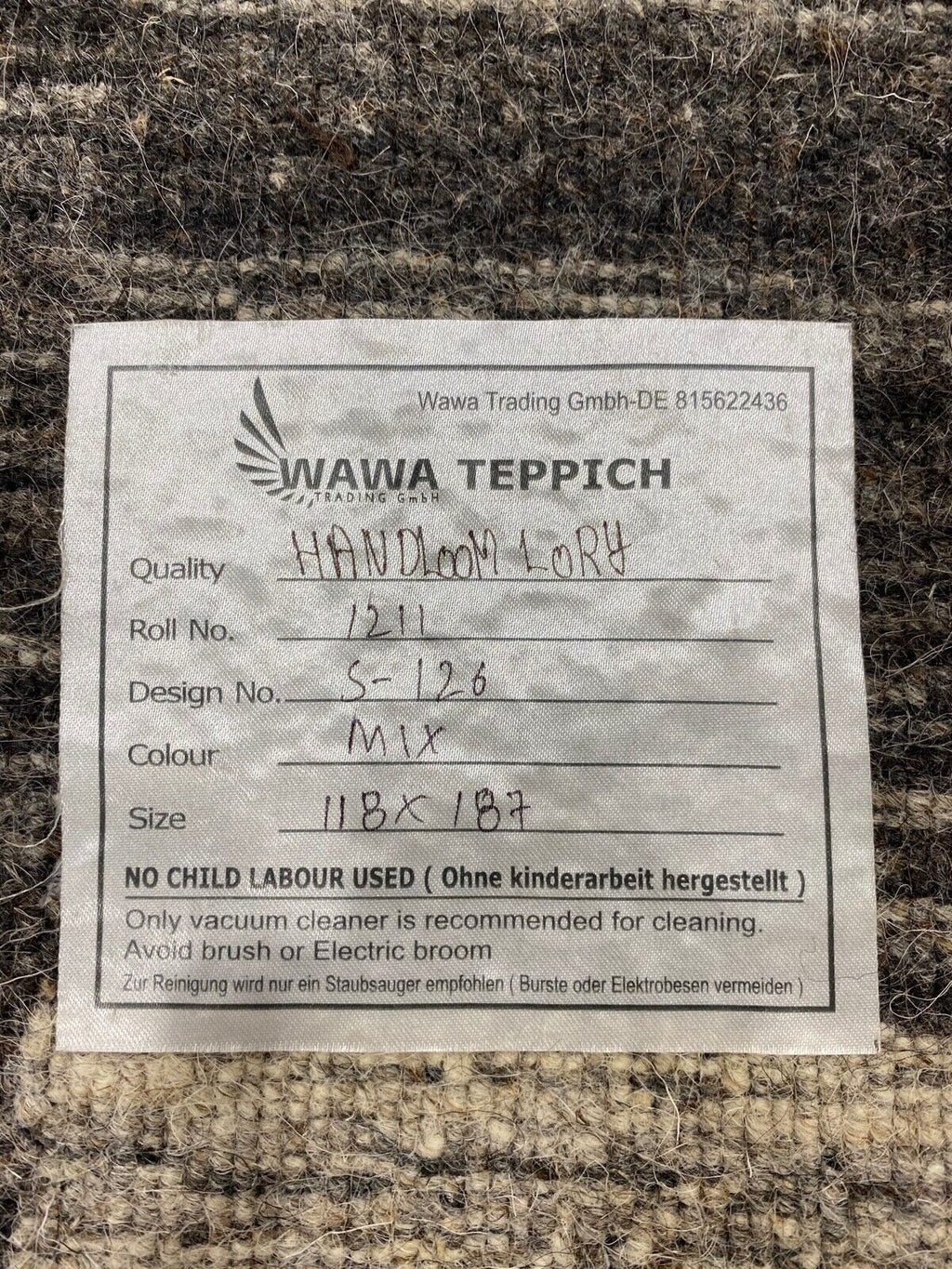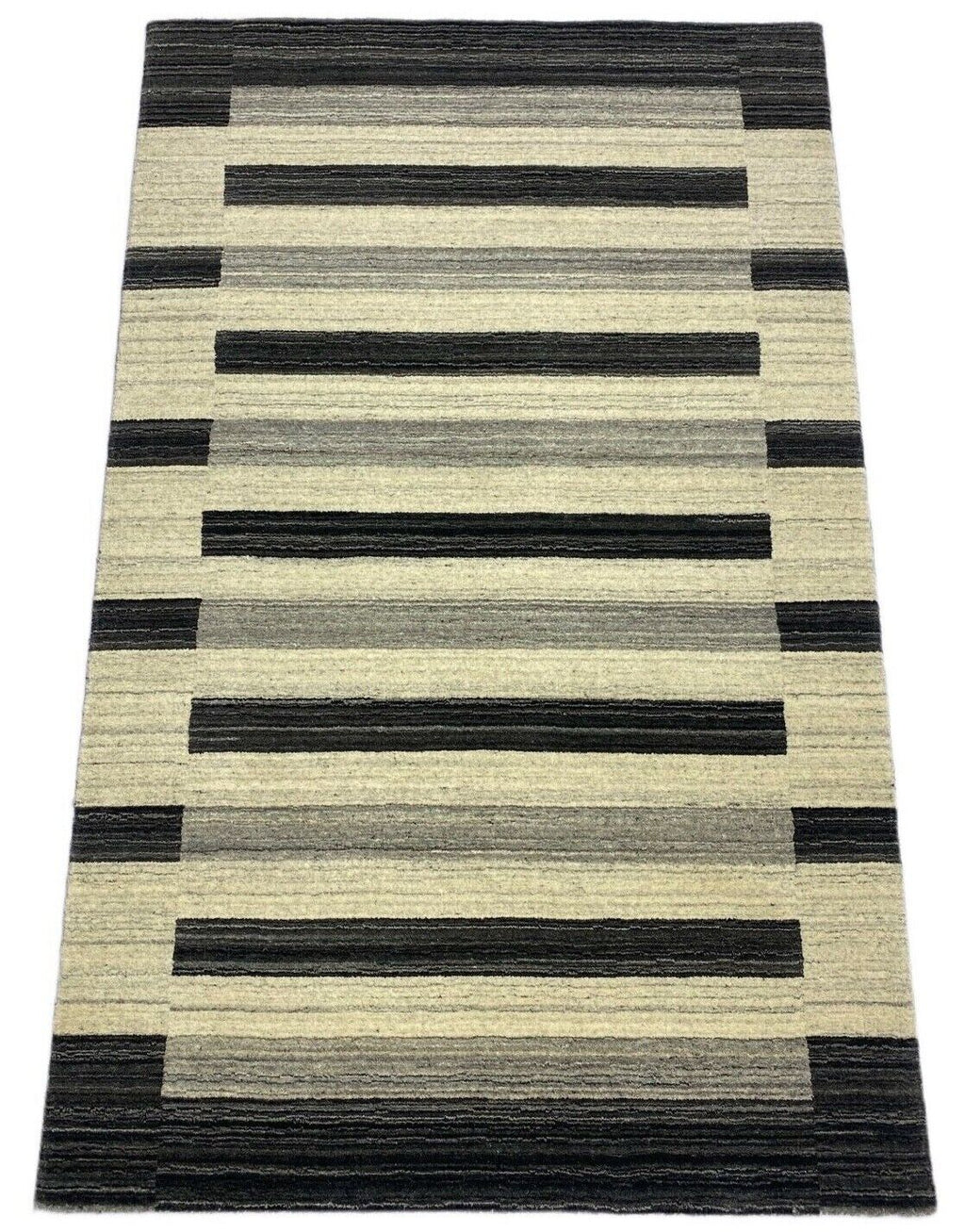 Teppich 100% Wolle Schwarz Beige Gabbeh Handgewebt 118x187 cm Naturwolle S126