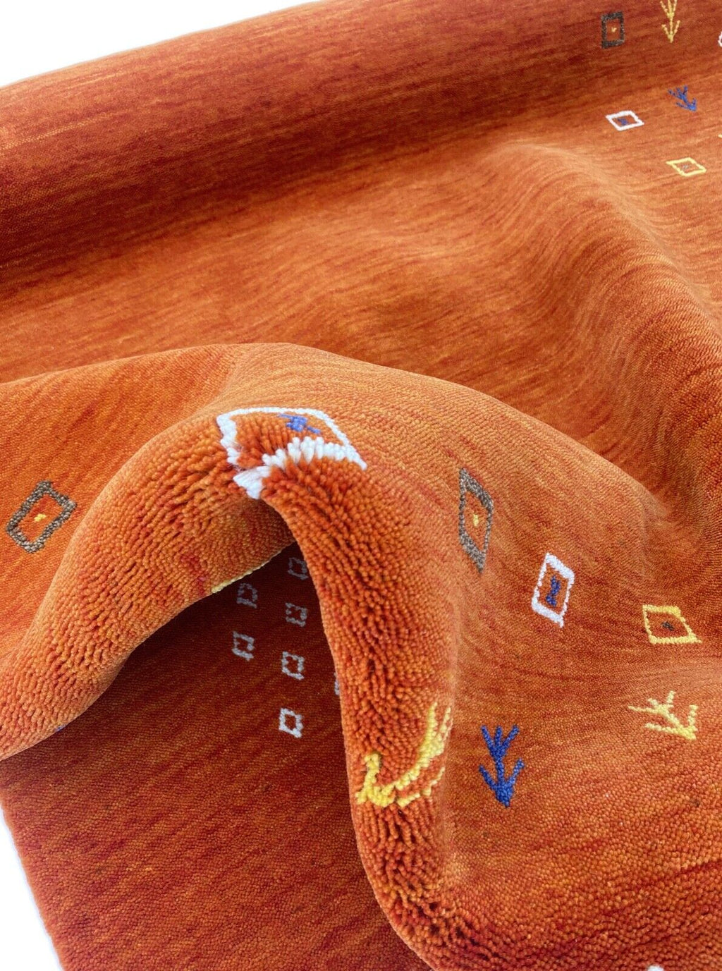 Terrakotta Teppich 100% Wolle 170x240 cm Handgewebt Gabbeh Orientteppich ac04