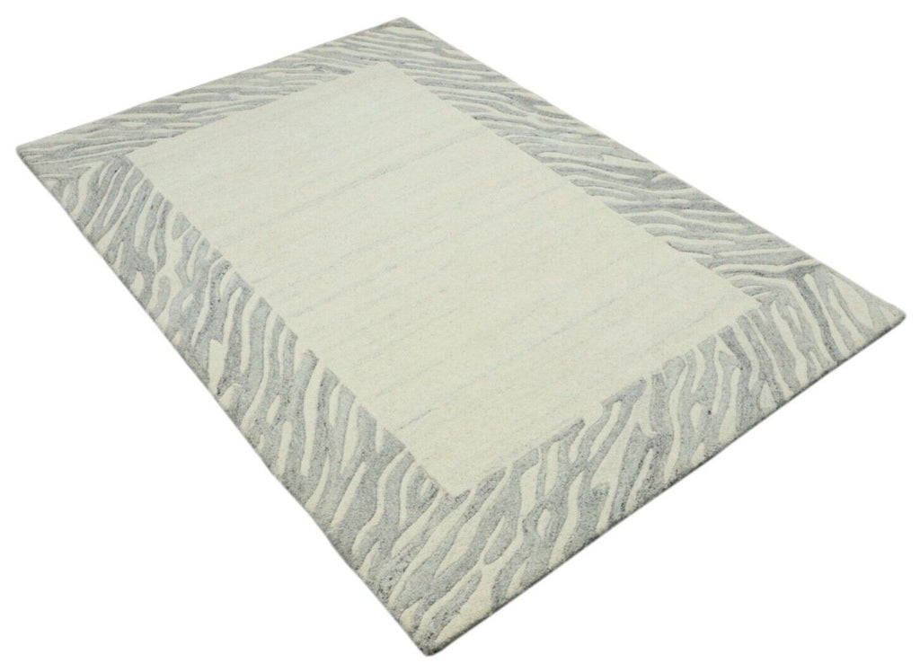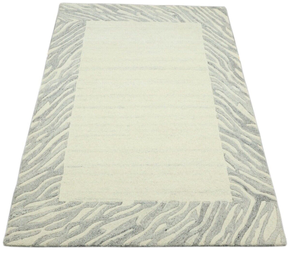 Preproga 100 % volna 120 x 180 cm Ročno izdelana bež siva ročno tkana T968