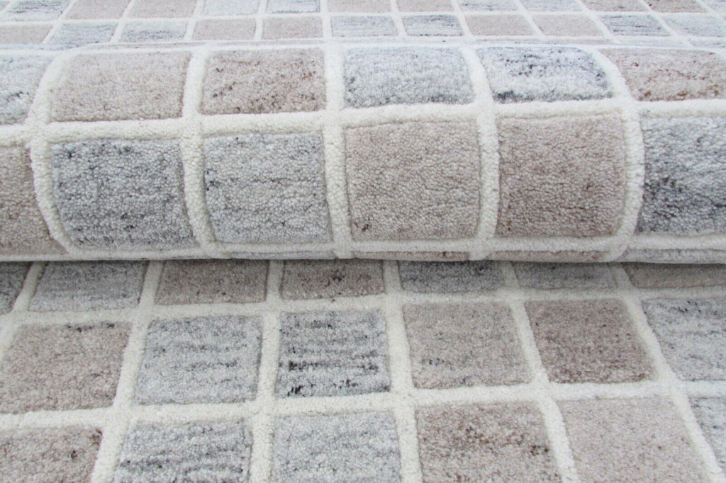Bež, siva, rjava preproga, 100 % volna, 160 x 230 cm, ročno izdelana, ročno tkana, T809