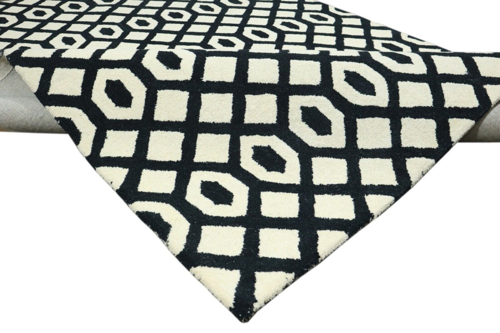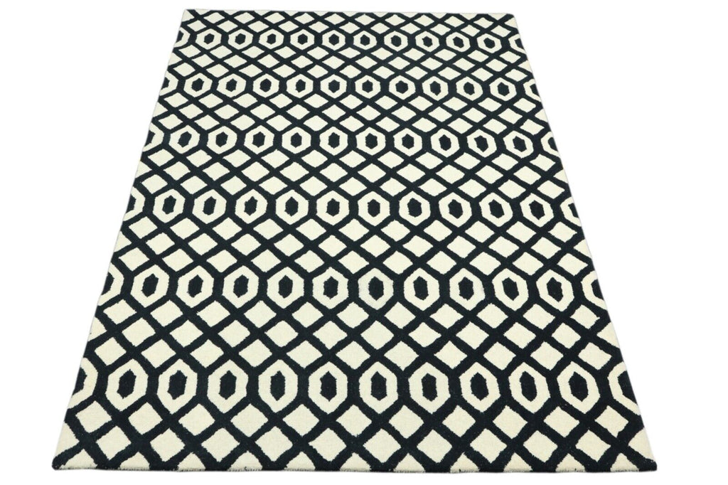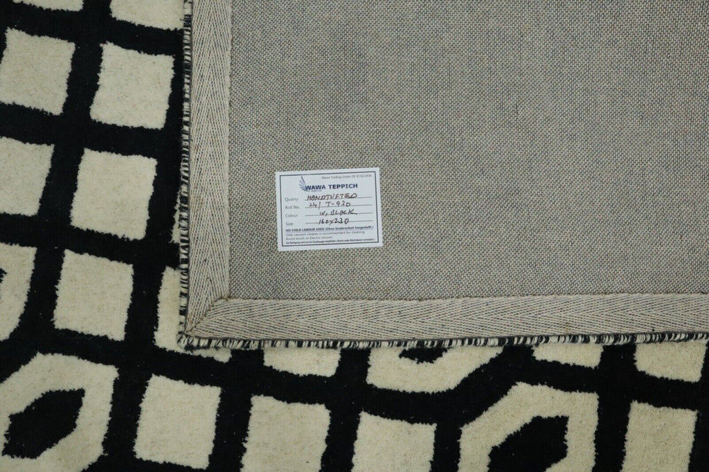 Bež in črna preproga, 100 % volna, 160 x 230 cm, ročno izdelana, ročno tkana, T930
