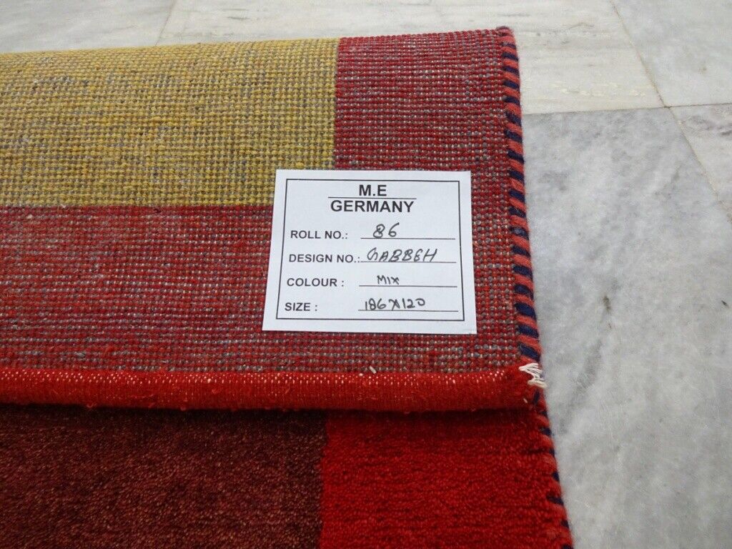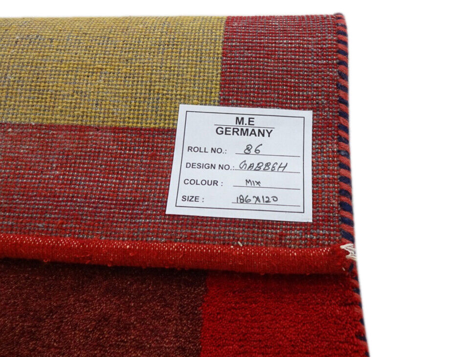 Preproga Gabbeh, ročno vozlana, 100 % volna, zlata in rdeča orientalska preproga, 120 x 186 cm, M86