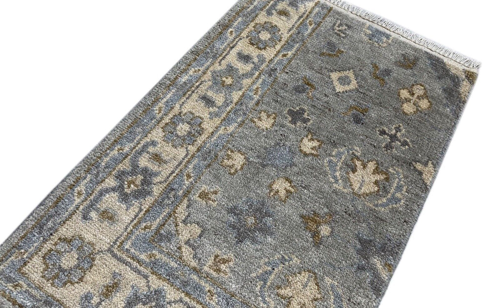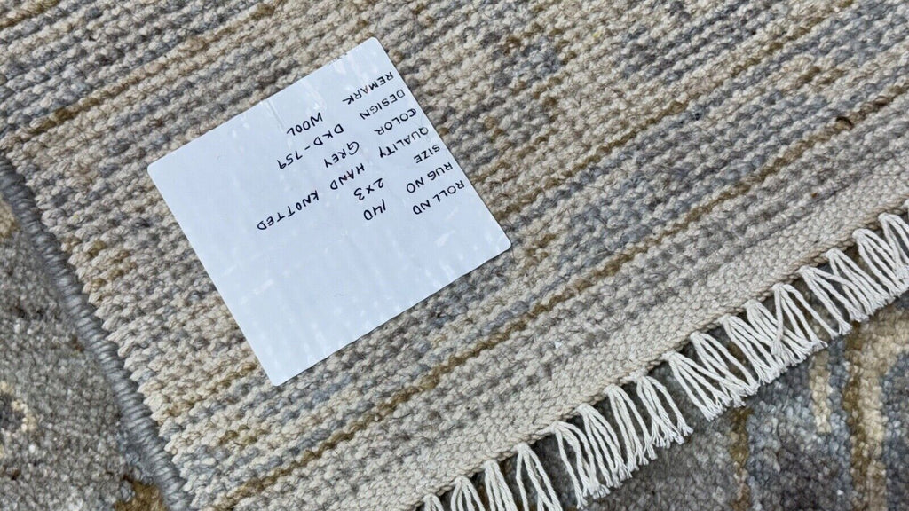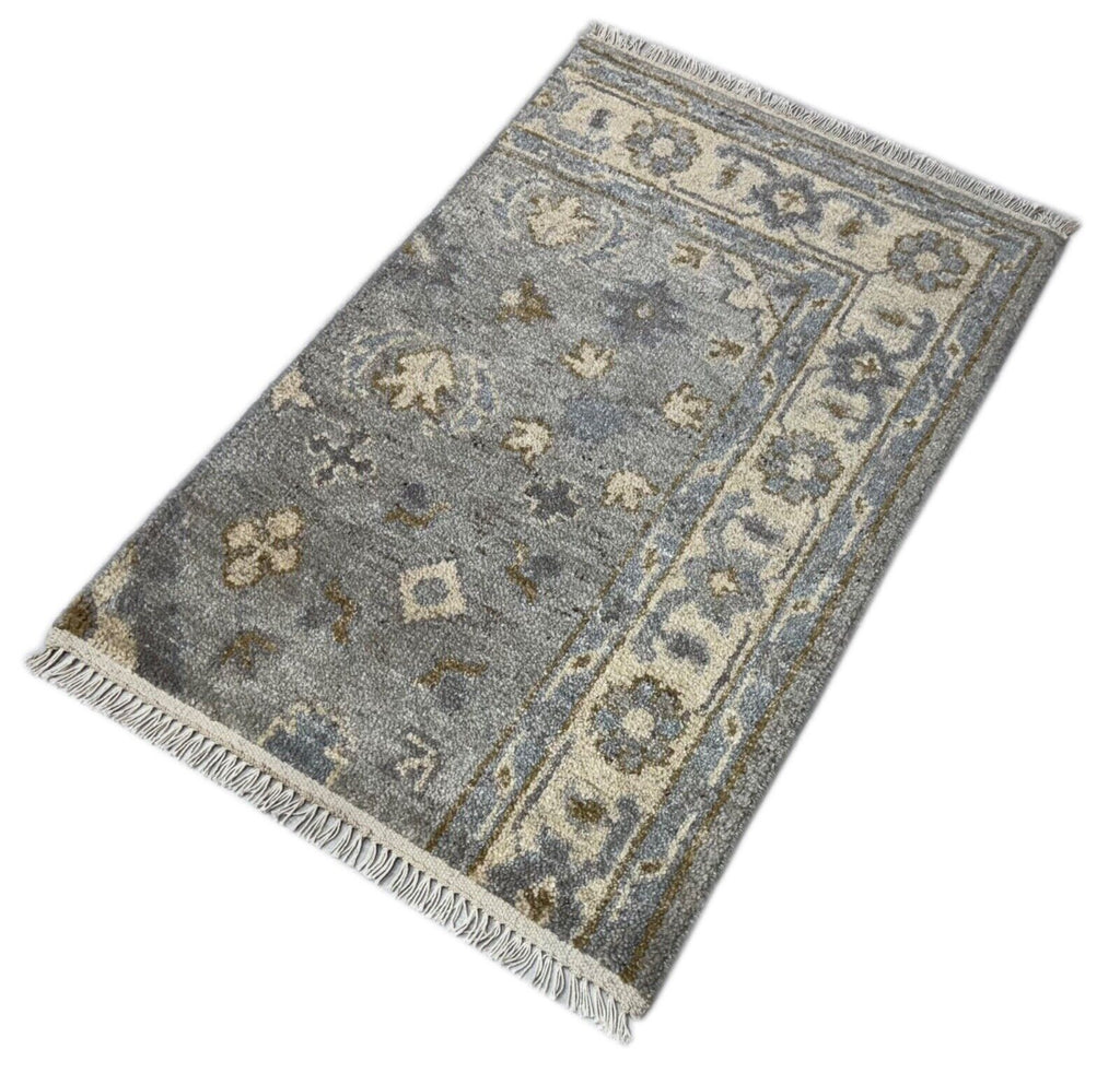 Ročno vozlana volnena preproga 60x90 cm s kratkim vlaknom, moderna sivo-bež preproga st140