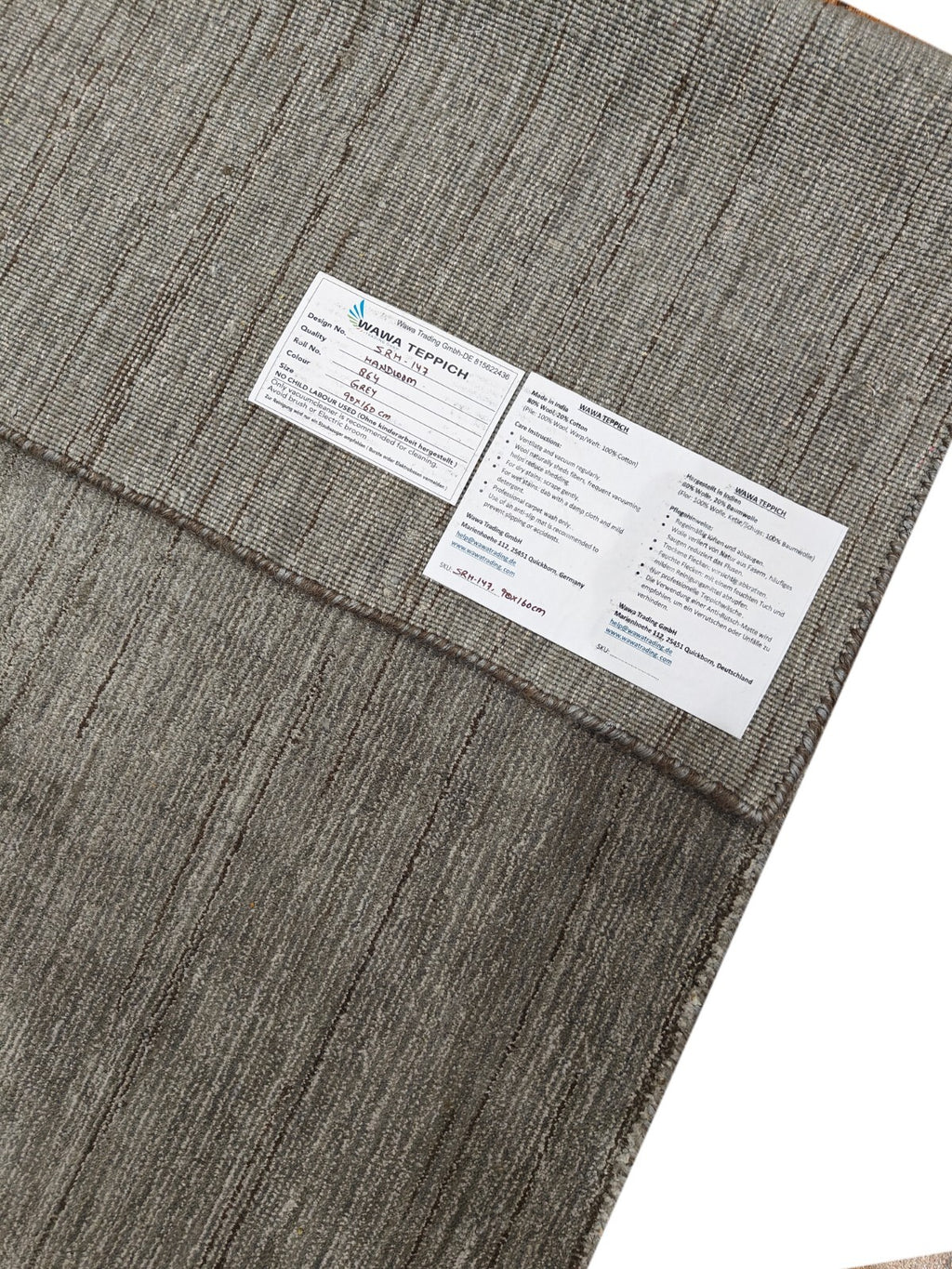 Ročno tkana preproga 90x160 siva volna lanena sijajna površina dnevna soba SH147