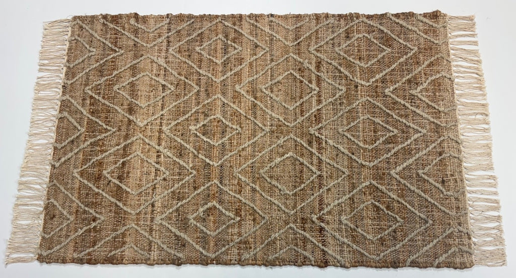 Jutena preproga 60x90 cm – Naravni in etnični slog z ročno tkanim vzorcem