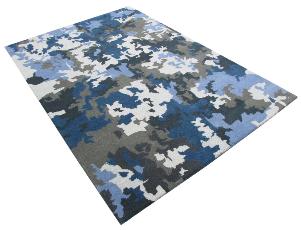 蓝米灰地毯 100%羊毛 160x230厘米 现代手工簇绒 T905