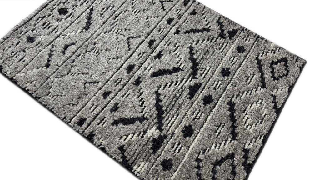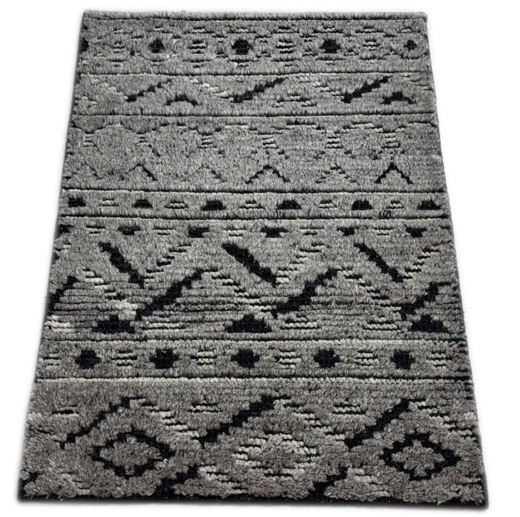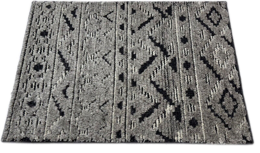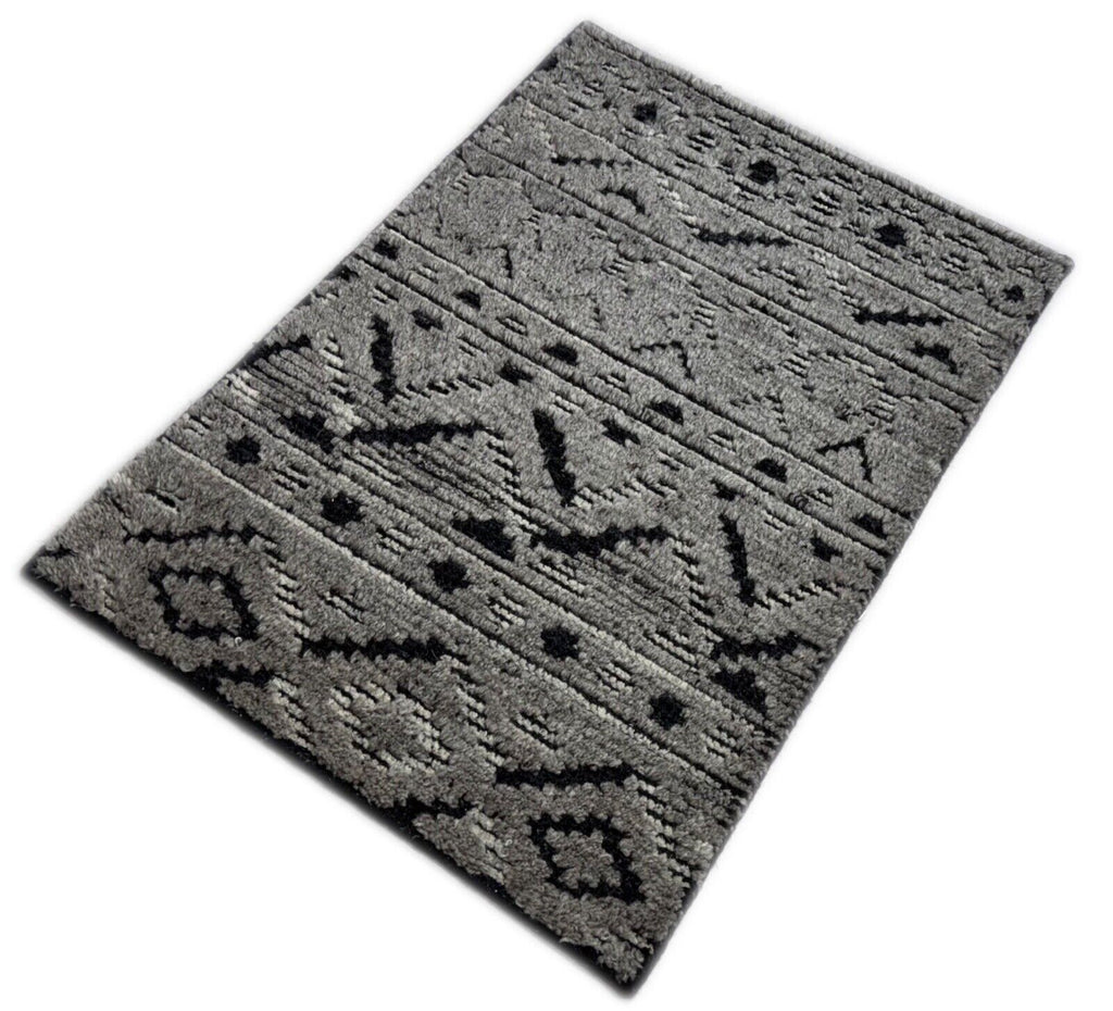 现代地毯 60x90 手工编织羊毛粘胶混纺灰色、黑色 DKD-728
